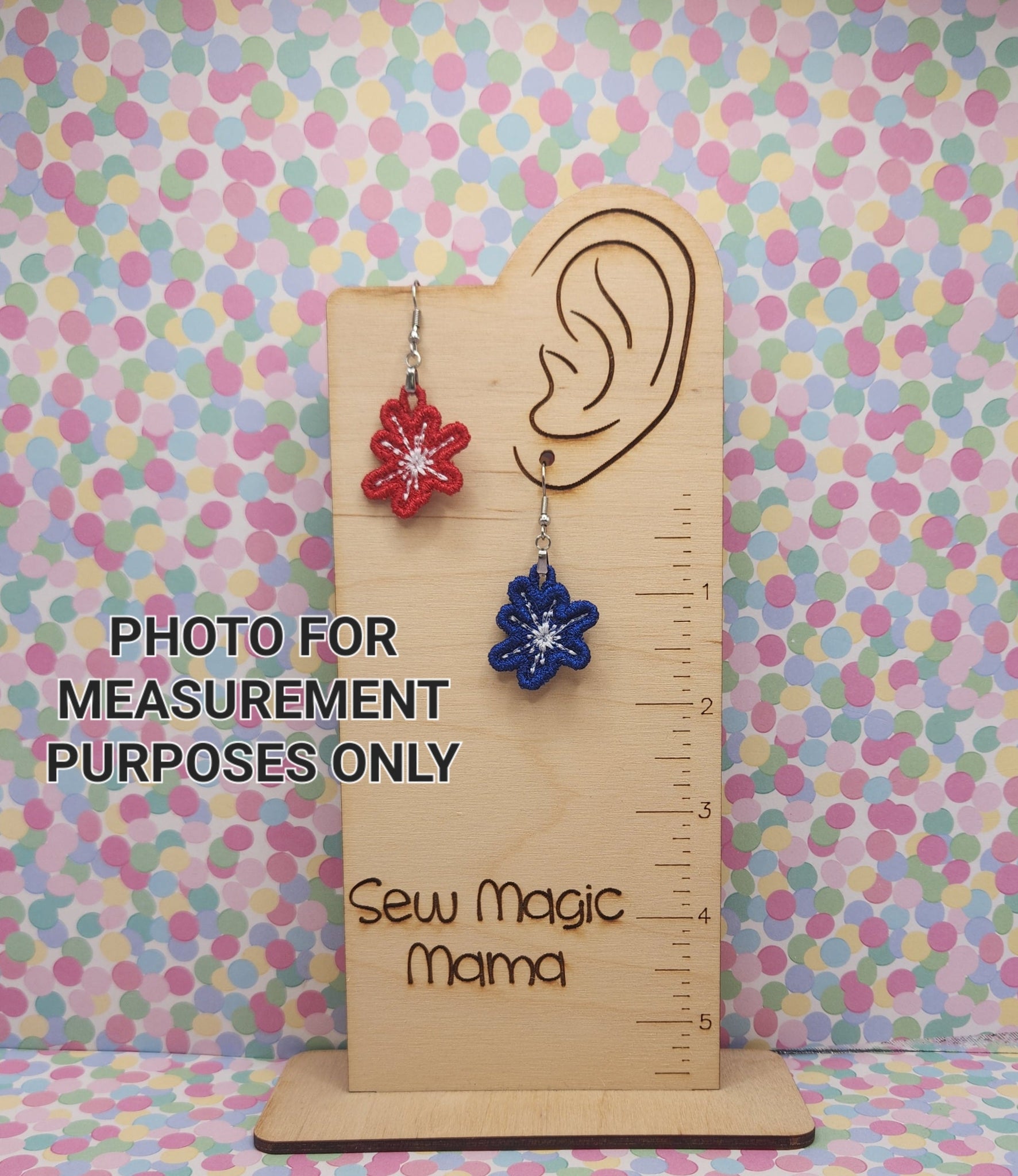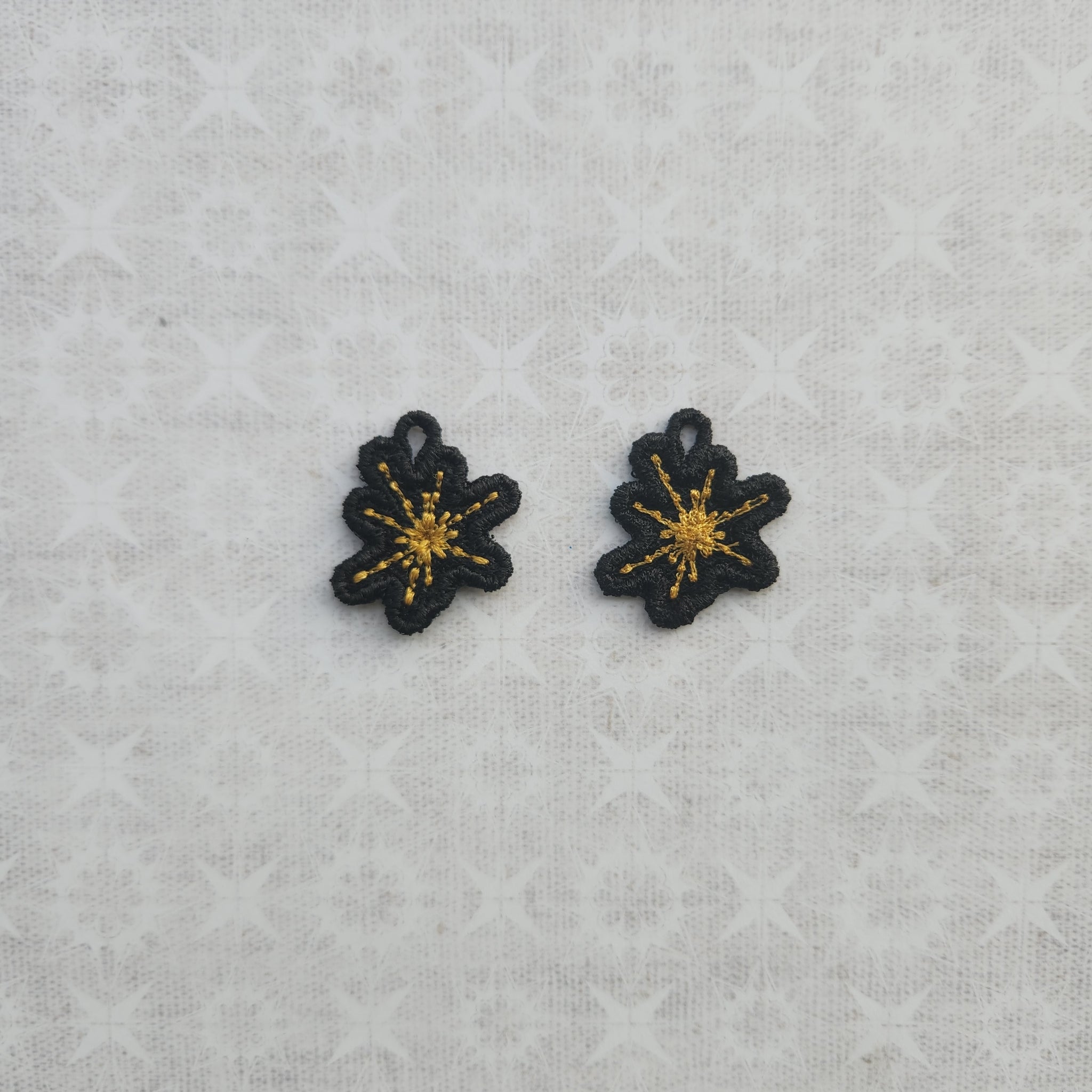 Our earrings are super lightweight being made completely out of thread using a technique with an embroidery machine called freestanding lace.