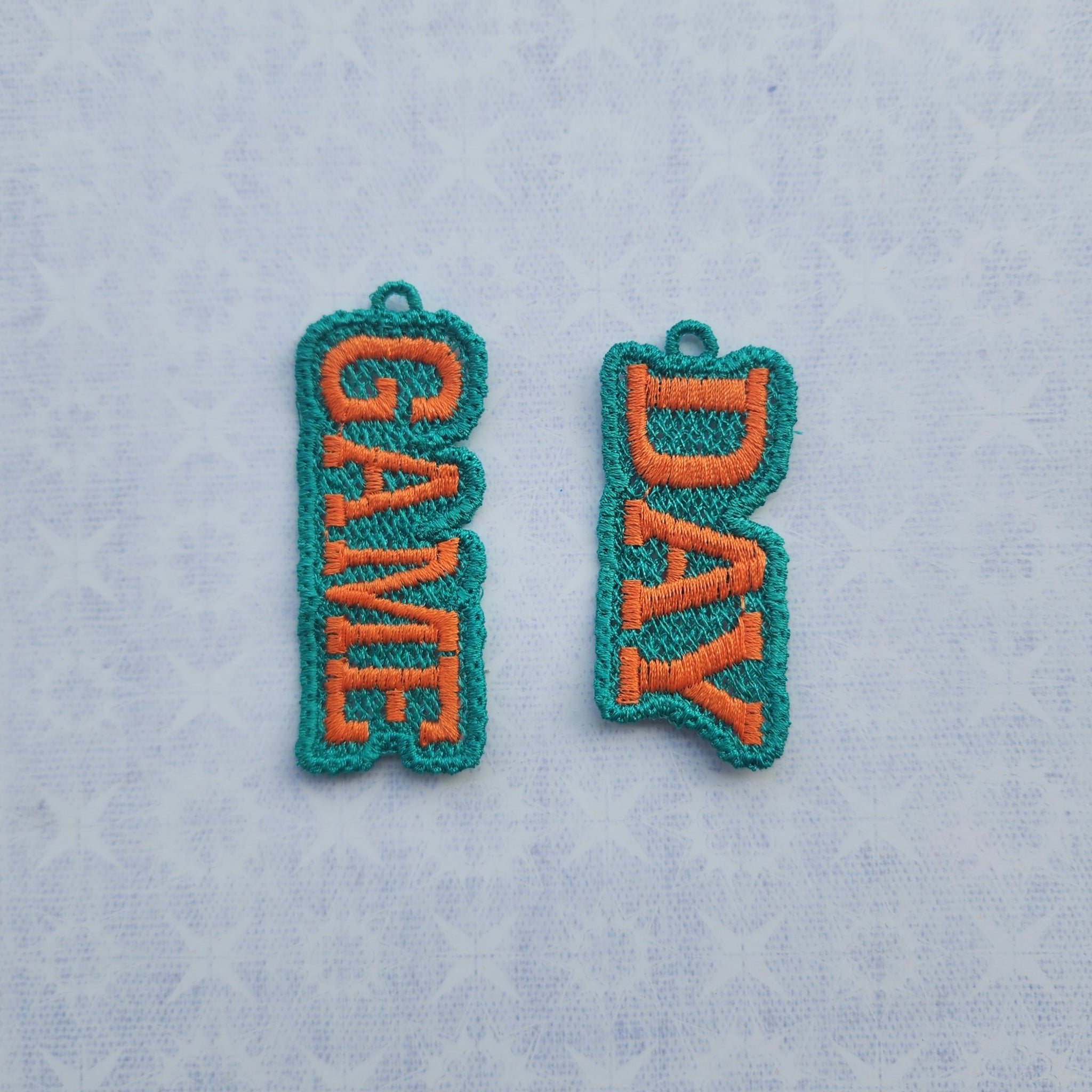 Our earrings are super lightweight being made completely out of thread using a technique with an embroidery machine called freestanding lace.