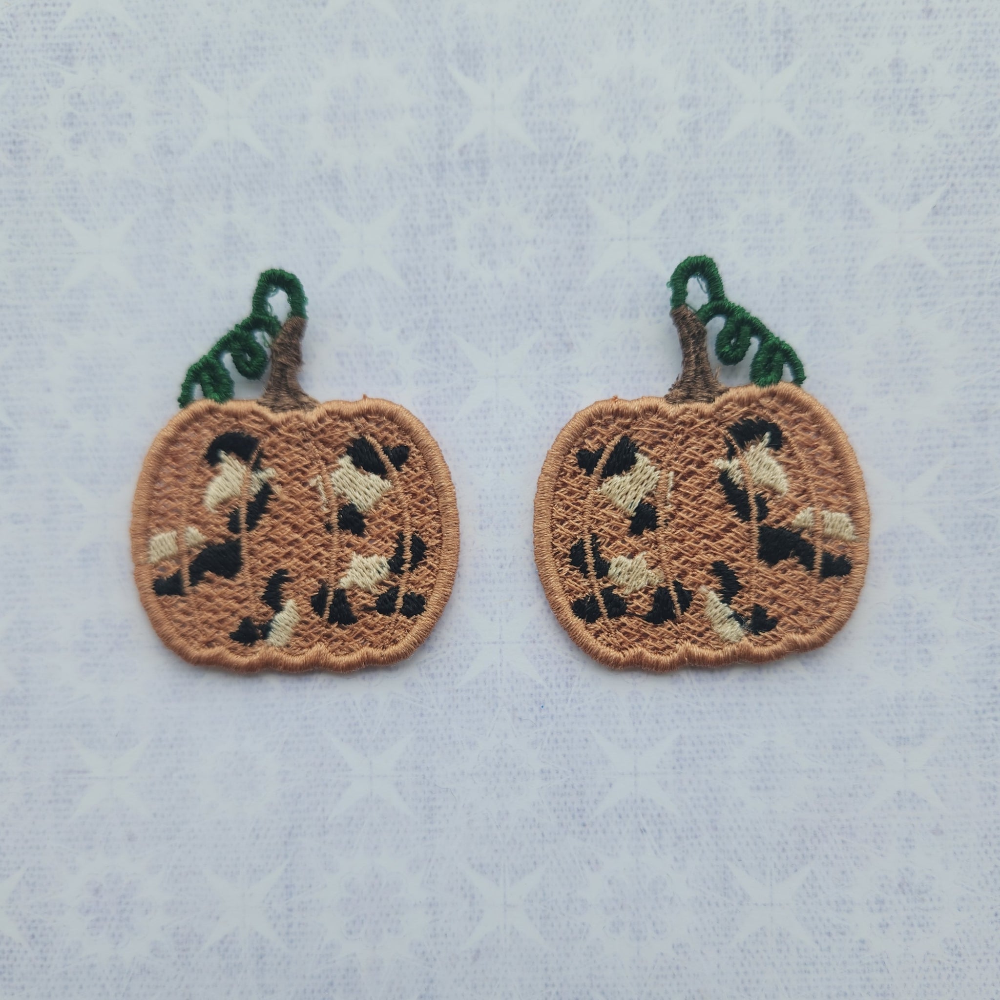 Our earrings are super lightweight being made completely out of thread using a technique with an embroidery machine called freestanding lace.