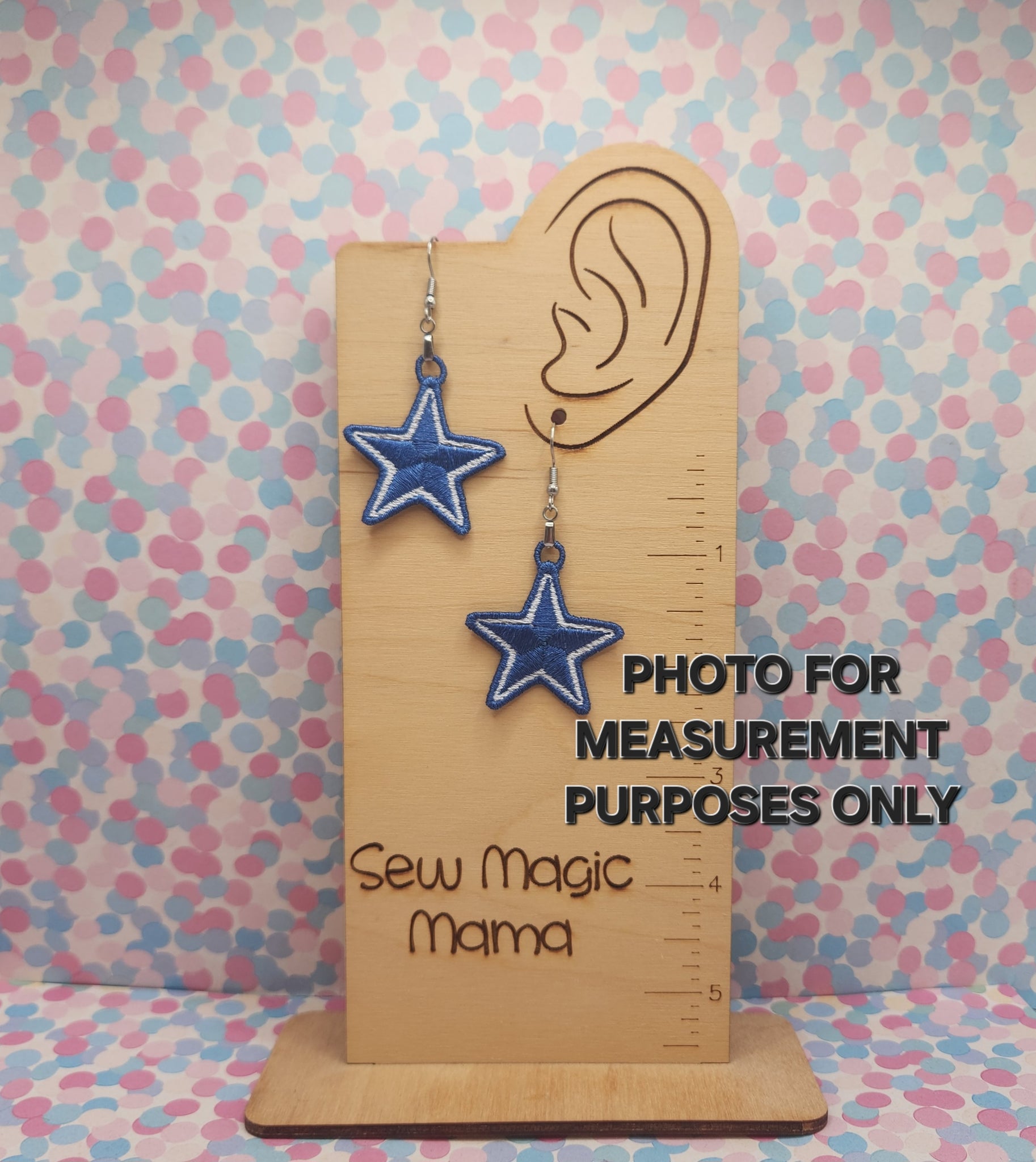 Our earrings are super lightweight being made completely out of thread using a technique with an embroidery machine called freestanding lace.