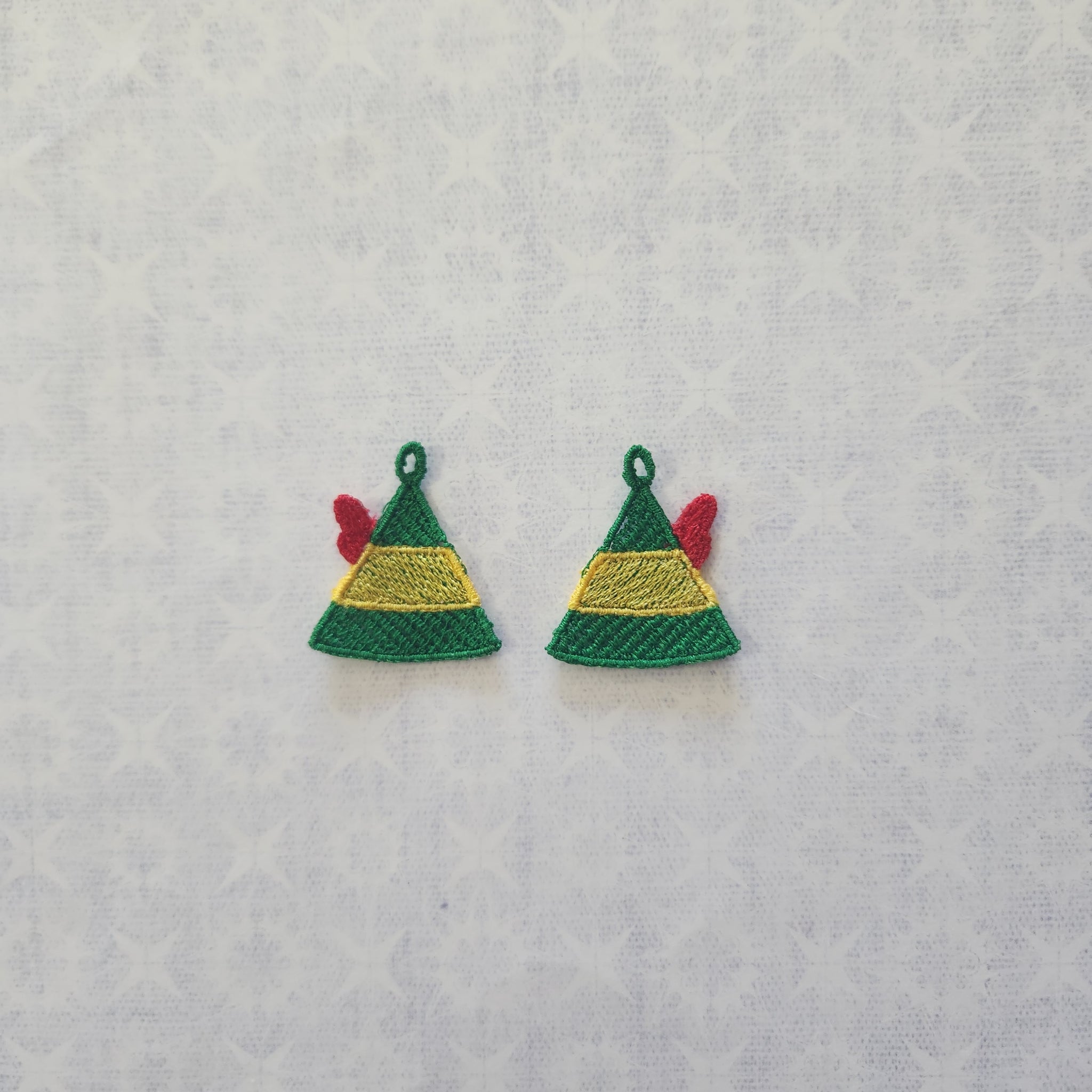Our earrings are super lightweight being made completely out of thread using a technique with an embroidery machine called freestanding lace.