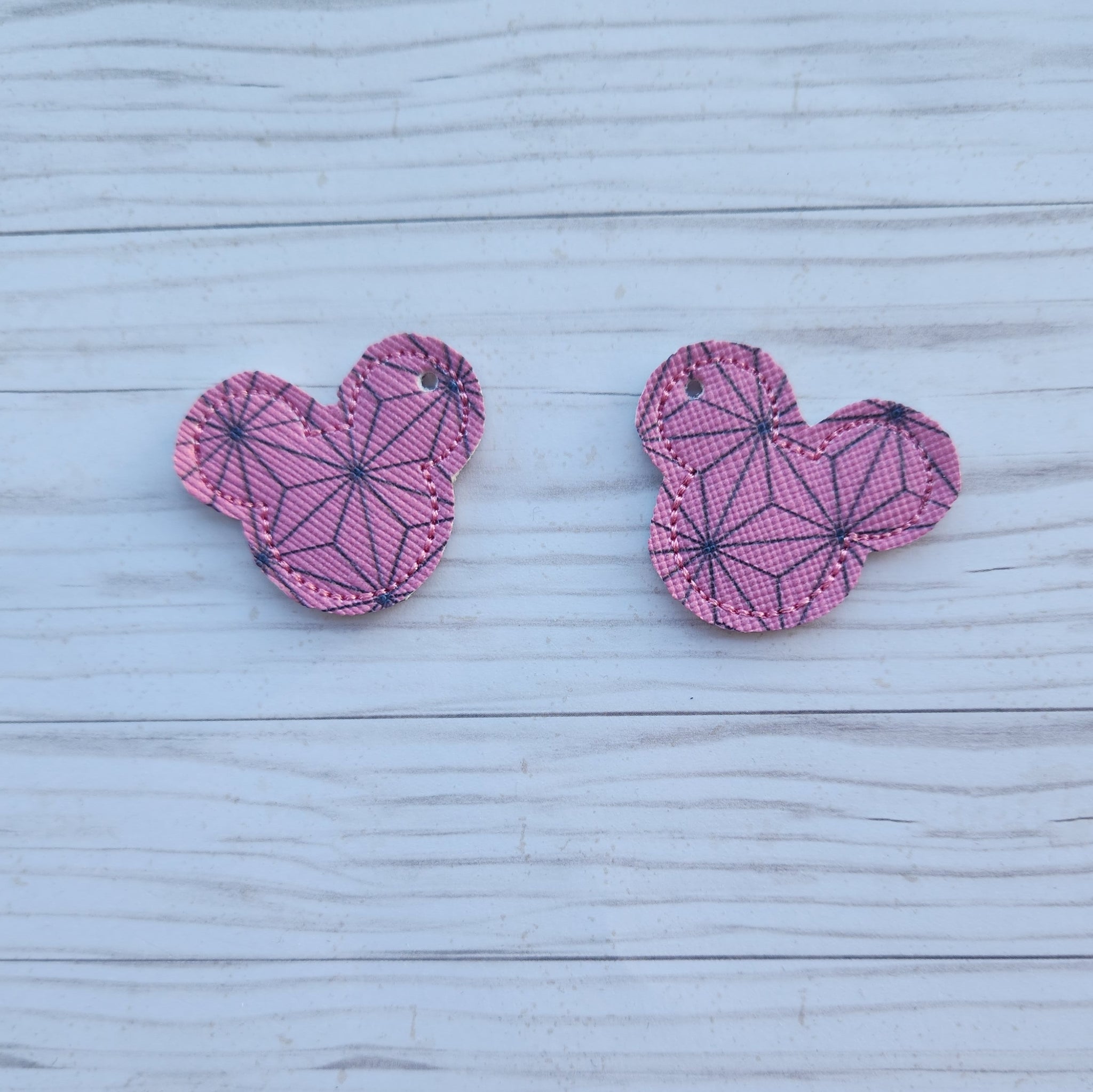 These earrings are made with the same synthetic leathers that we use with most of our products.  The back side of the earrings are completely blank and are made with a coordinating solid color fabric.